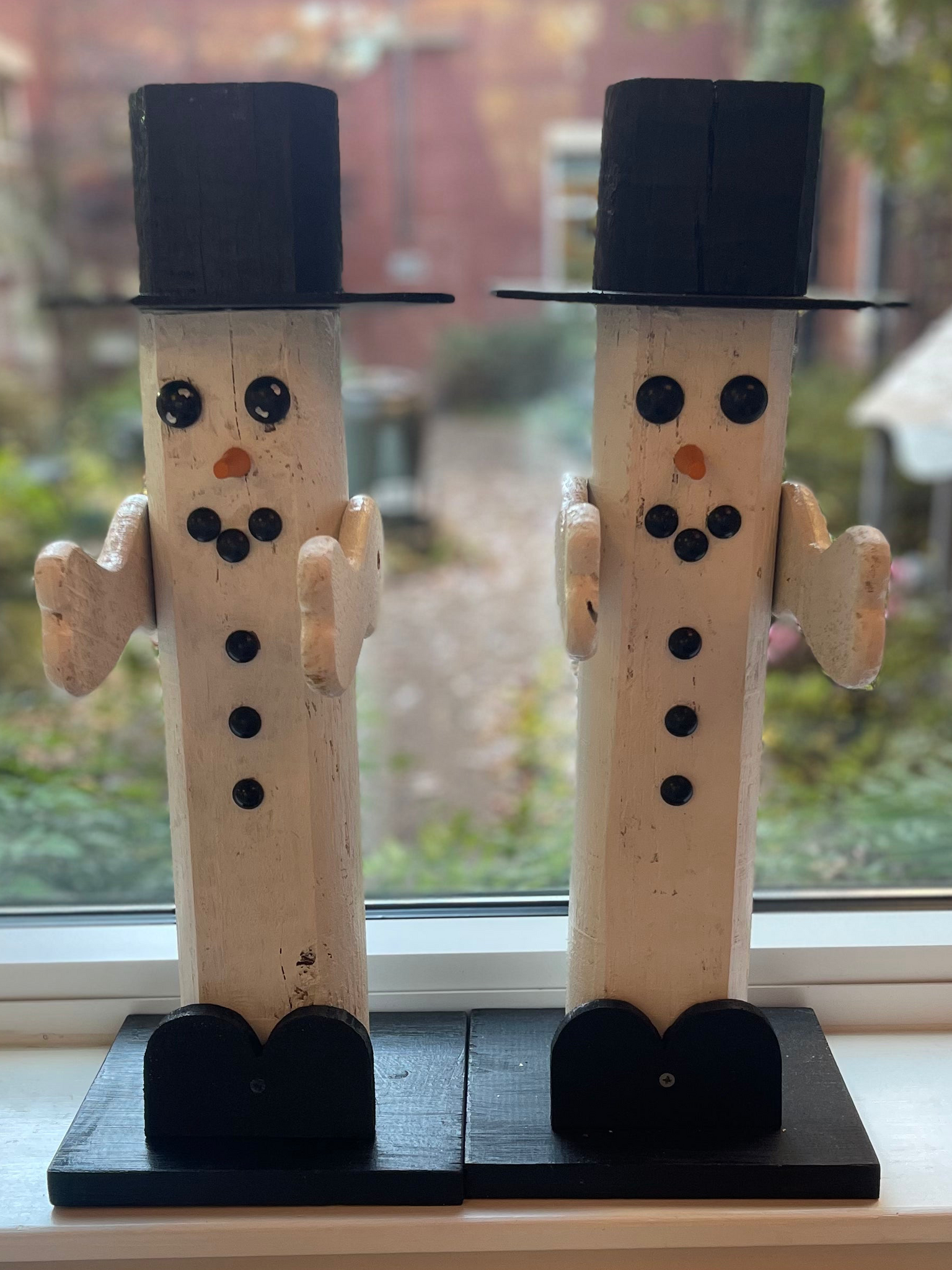 Handmade wooden snowman, made by the students at MLC. This would make a great addition to your Holiday decor on your front porch, your mantle, or as the cutest door stop!